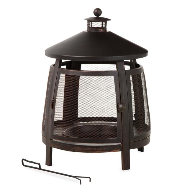 Fireplace & Hearth Fully Enclosed Pagoda Fire Pit With Poker | Plow & Hearth Wood Burning Fire Pits
