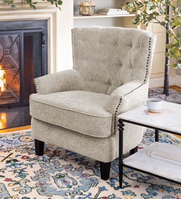 Indoor Living Beverly Tufted Accent Chair With Nailhead Trim Ash | Plow & Hearth Home Office