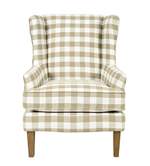 Indoor Living Buffalo Plaid Upholstered Wingback Chair Natural | Plow & Hearth Chairs & Rockers