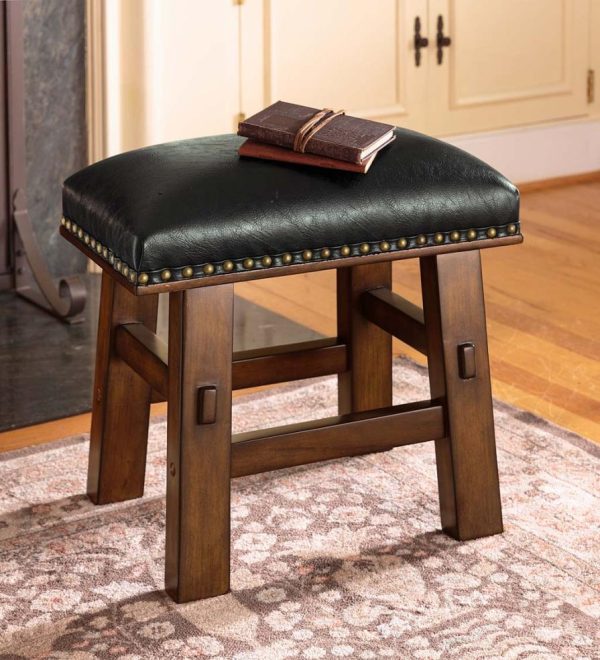 Indoor Living Canyon Black Leather Footstool Black | Plow & Hearth Footstools