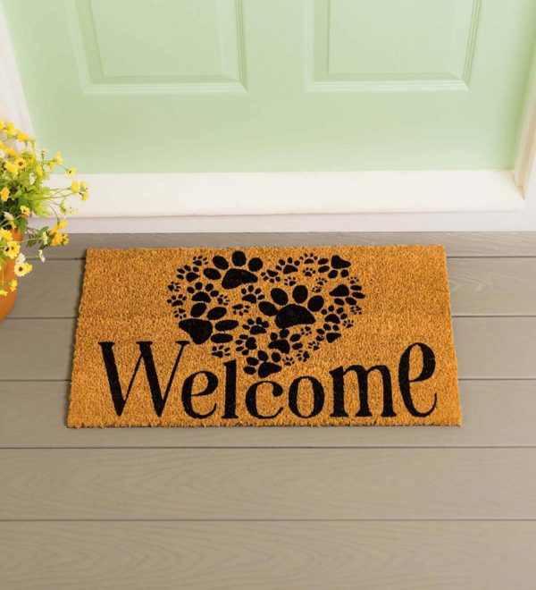 Indoor Living Paw Print Heart Welcome Coir Mat | Plow & Hearth Doormats quantity