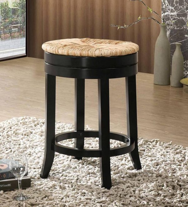 Indoor Living ” Round Rush Seat Swivel Bar Stool Antique Black | Plow & Hearth Kitchen & Bar Stools