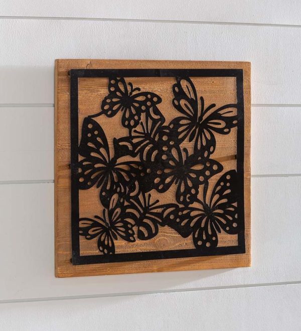 Indoor Living Wood And Laser Cut Metal Butterfly Wall Art | Plow & Hearth Home Accents