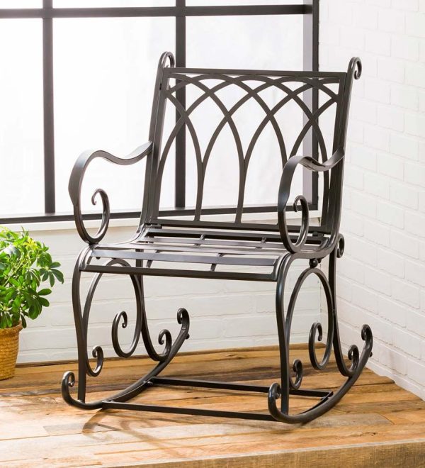 Outdoor Living Black Metal Rocking Chair | Plow & Hearth Rockers & Gliders