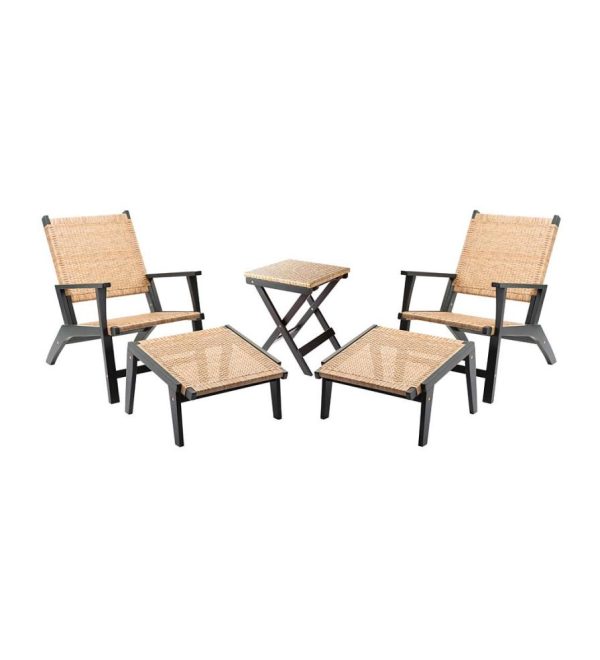 Outdoor Living Claytor Eucalyptus Outdoor Chairs And Ottomans With Table, -Piece Set Black | Plow & Hearth Outdoor Wicker