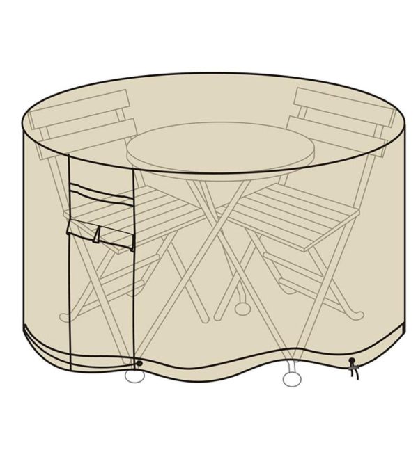 Outdoor Living Deluxe Large Round Table And Chairs Cover Tan | Plow & Hearth Furniture Covers