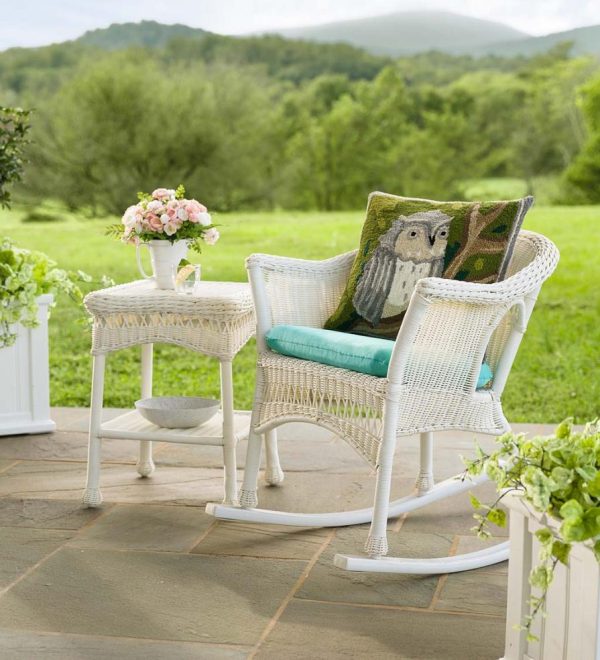 Outdoor Living Easy Care Resin Wicker Rocker And End Table | Plow & Hearth Outdoor Wicker