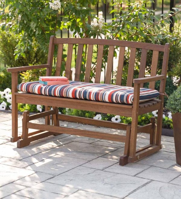 Outdoor Living Eucalyptus Wood Love Seat Glider, Lancaster Outdoor Furniture Collection Natural | Plow & Hearth Wood Furniture