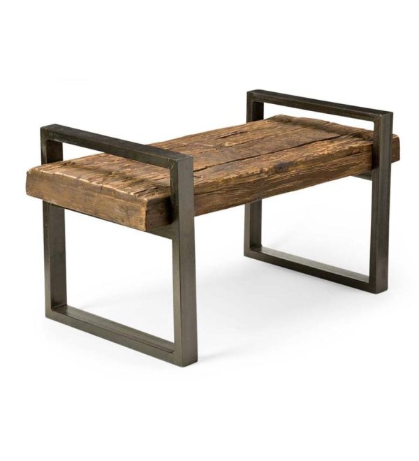Outdoor Living Reclaimed Wood And Iron Outdoor Bench Bronze | Plow & Hearth Wood Furniture quantity
