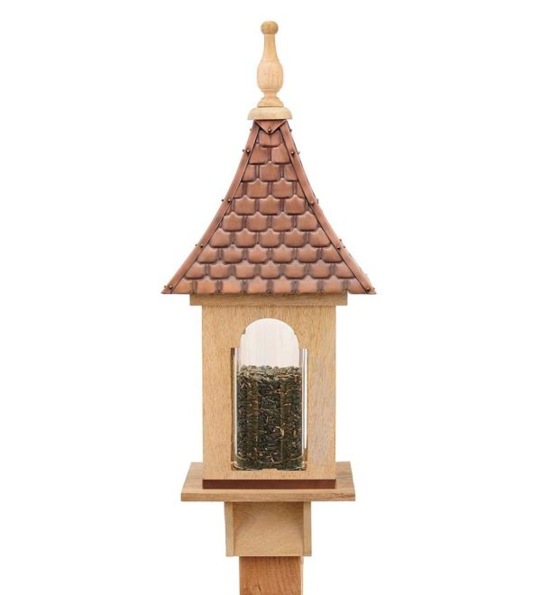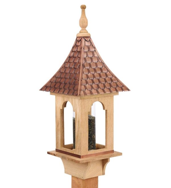 Yard & Garden Hand-Hammered Copper And Unstained Hardwood Villa-Style Bird Feeder | Plow & Hearth Bird Feeders
